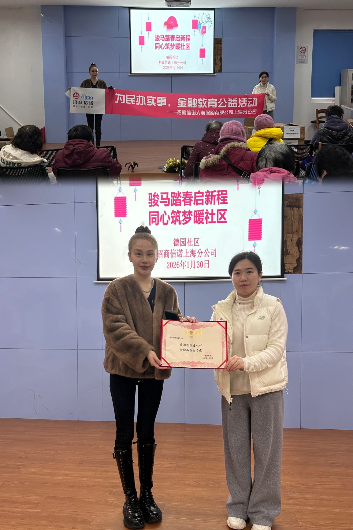 在社区热闹喜庆的迎新氛围中,1月30日下午,招商信诺人寿