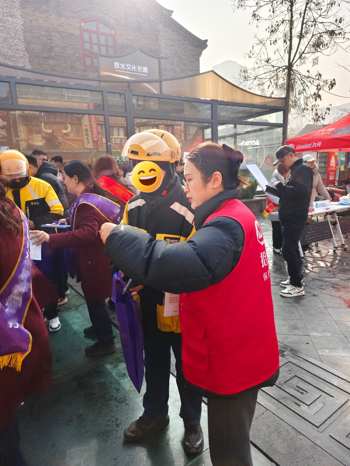 此次活动创新融入场景化服务,特别关注外卖骑手、快递小哥等新就业群体。现场,招商信诺山东分公司代表为骑手们送上包含金融安全手册的“暖心物资礼包”,让城市劳动者感受到真切关怀,在传递温暖的同时,敲响风险防范警钟,切实为一线从业者筑牢权益保护屏障。同时,活动现场设置了游戏互动环节,涵盖了交通安全、应急逃生、防非反诈等主题,消费者通过参与游戏,通关打卡,普及金融消费知识,在轻松氛围中掌握防骗技巧与维权途径。