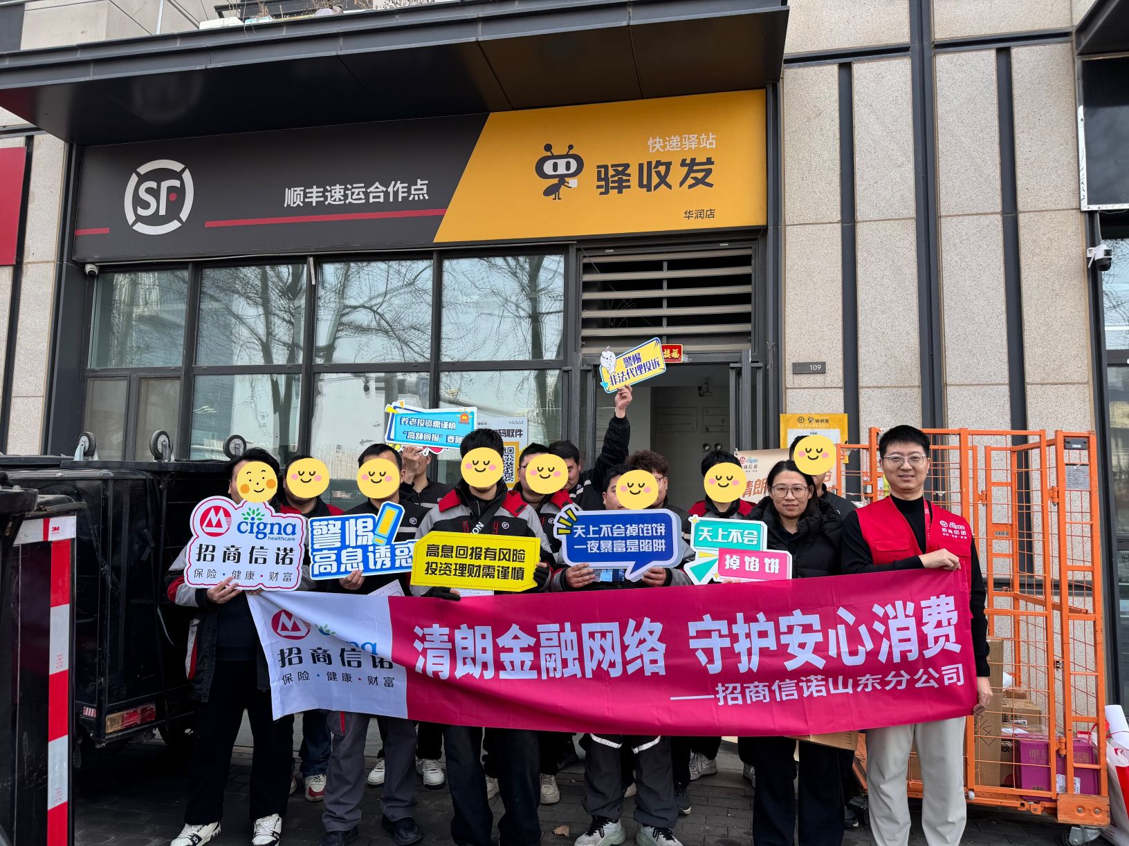 简称“招商信诺”)山东分公司走进周边快递站点,开展以“清朗金融网络 守护安心消费”为主题的金融知识宣传活动,将专业的金融反诈防护知识送到群众身边。