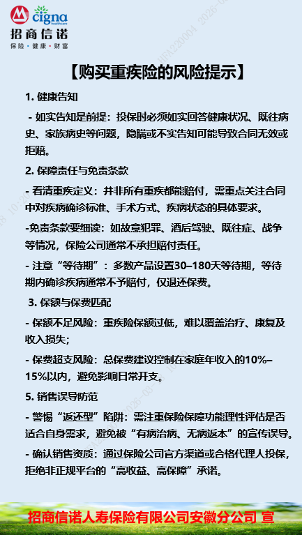 购买重疾险的风险提示【招商信诺安...